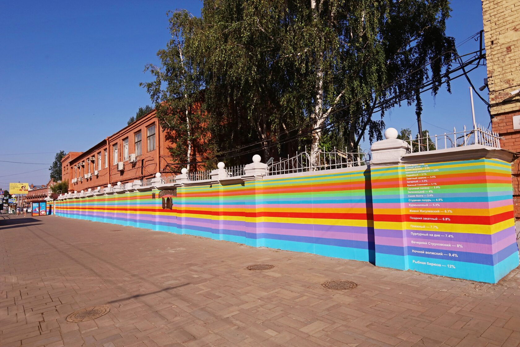 Самару позиционируют как курортный город. Много гостей приезжают к нам на наши набережные и пляжи. По сути стена - это дорога к пляжу, поэтому такое яркое цветовое решение очень уместно. Пусть в нашем городе будет больше таких радостных стен.